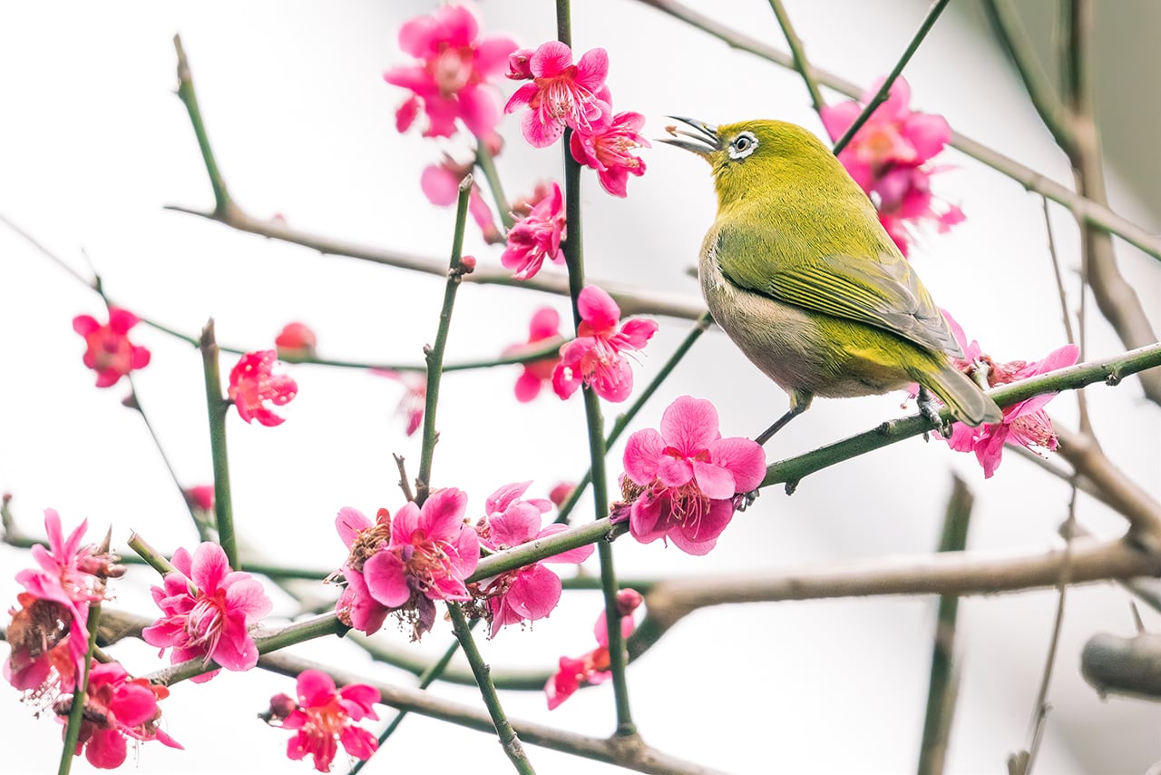 東京新百景に選定されている東京都町田市「薬師池公園」で撮影した梅とメジロの写真です。